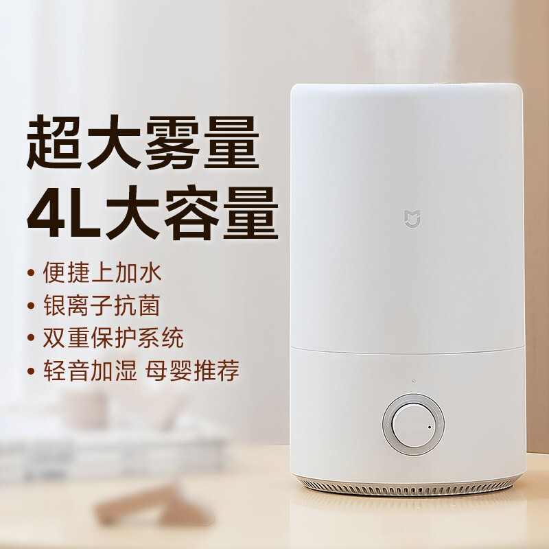 米家 小米加湿器卧室家用办公室桌面 迷你低噪空气加湿 银离子材料 上加水 4L大容量