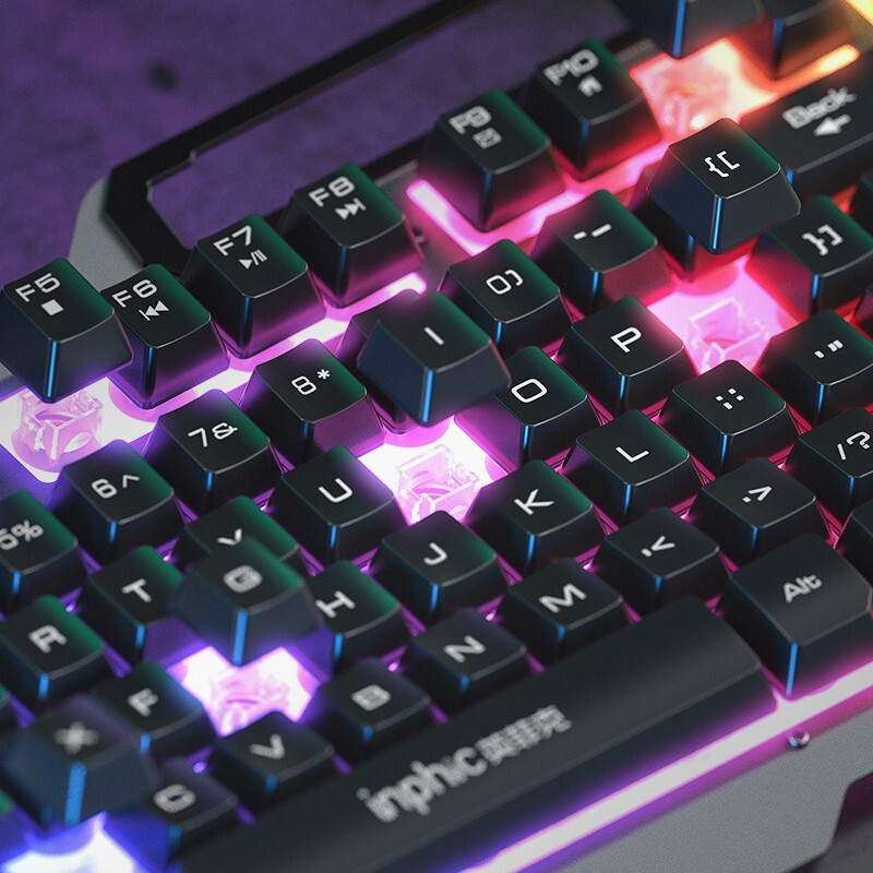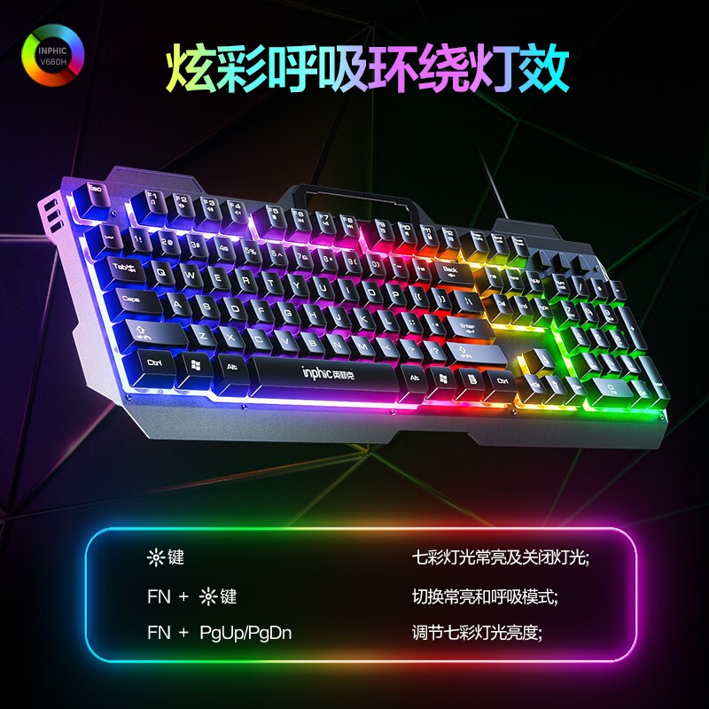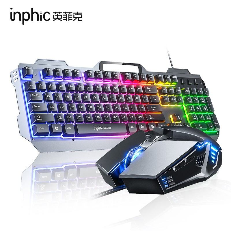 英菲克(INPHIC)V680真机械手感键盘鼠标套装有线游戏办公电脑台式机USB外接吃鸡背光键鼠套装金属面板 灰