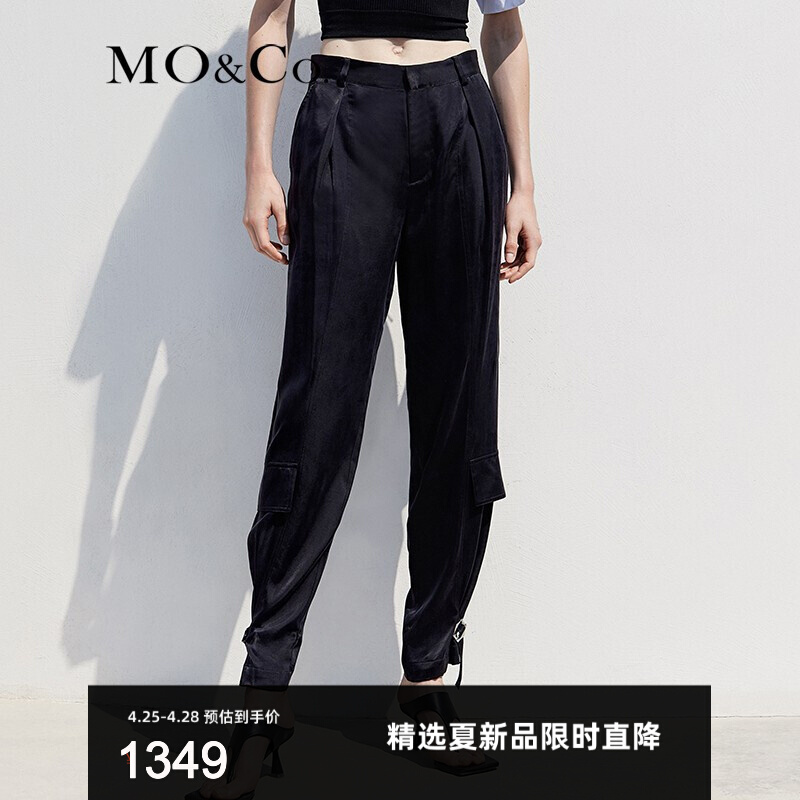 商品名称:MOCO2021夏季新品桑蚕丝混纺束脚工装袋休闲裤MBA2PAT004 摩安珂 黑色 S