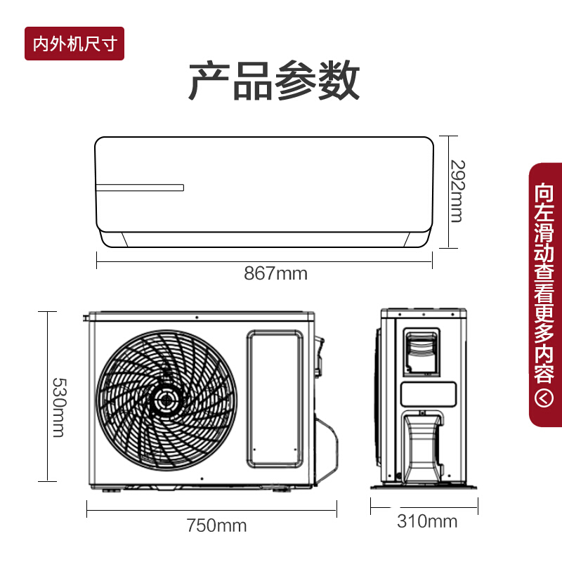- 外机机身尺寸(宽x高x深)mm