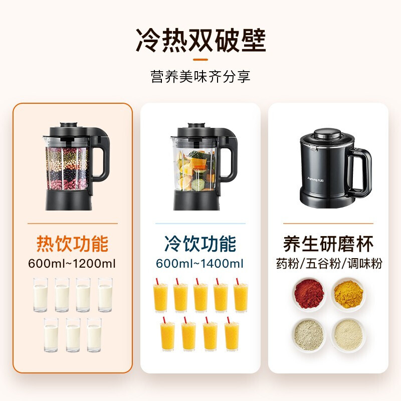 商品名称:九阳(Joyoung)破壁机家用大容量可预约加热多功能榨汁机豆浆料理机清洗双杯新品 珍珠棕 L18-P376